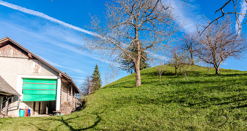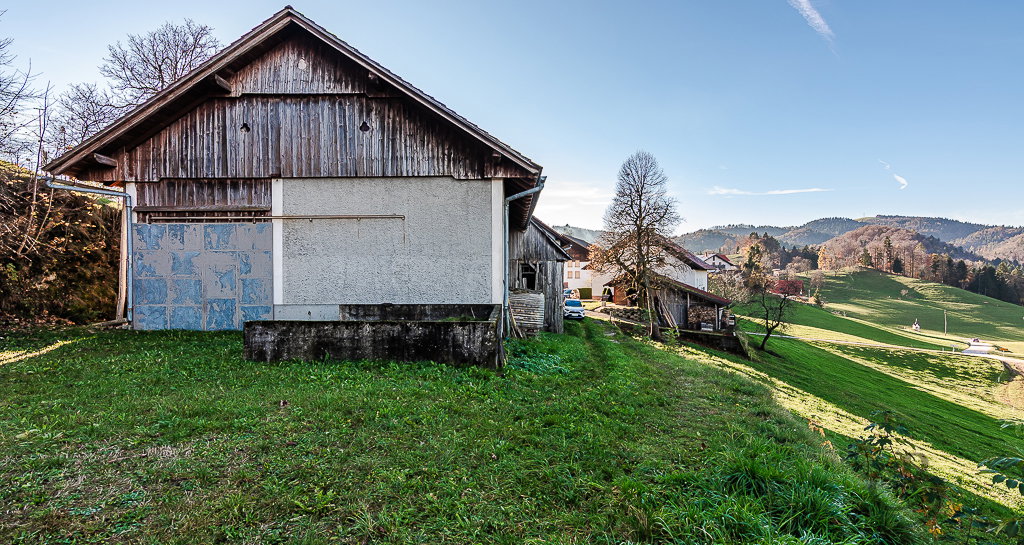 In addition to the house, the property also includes an auxiliary farm building, a large barn and a hayrack, adding significant value for a hobby or small-scale farming activity.