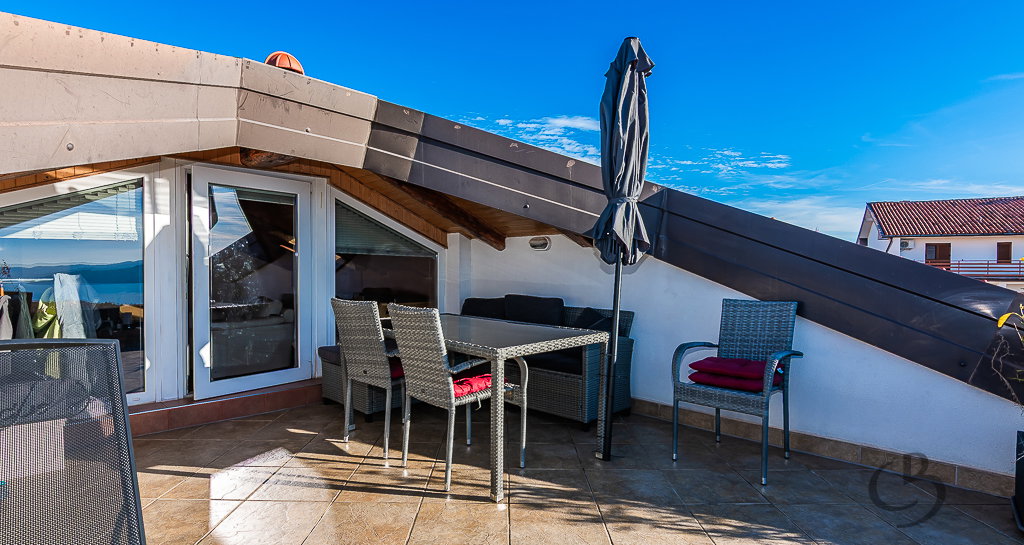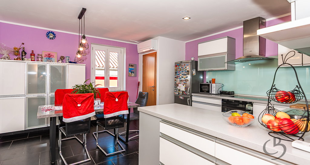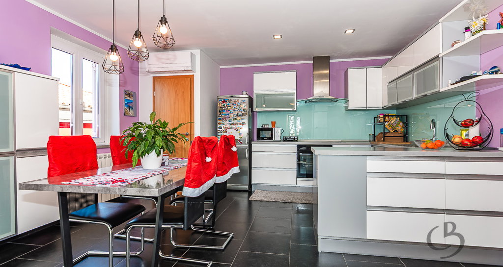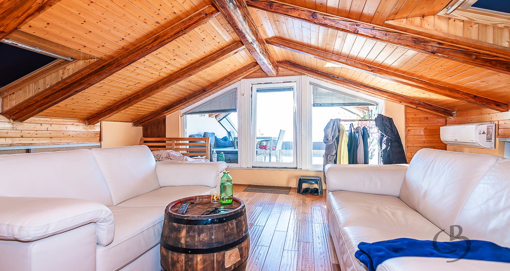 The apartment measures 140 m² net (179,7 m² gross) and was renovated in 2007 (including the roof) and properly thermally insulated. Year-round comfort is ensured by a heat pump, and additionally, three air-conditioning units are installed (for cooling or transitional heating).