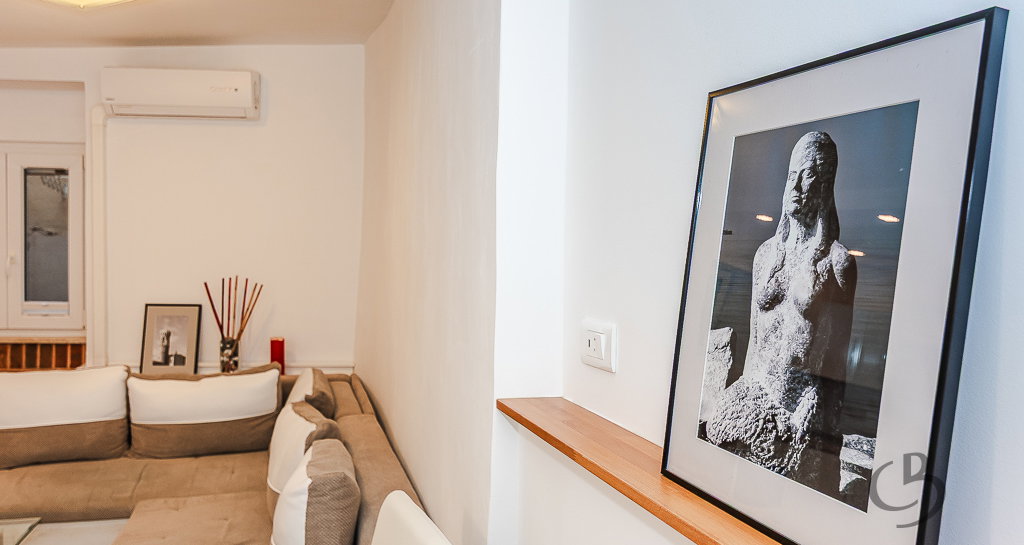 This 38.5 m² apartment is located on the 2nd floor of a well-maintained building, just a short stroll from Tartini Square and the Vegetable Market in Piran. It was thoroughly renovated in 2022: all windows were replaced, new flooring was installed, new entrance and interior doors were fitted, new light fixtures were mounted and a new electrical cabinet was installed. The common staircase of the building has also been renovated, contributing to a neat appearance and a pleasant first impression when entering.