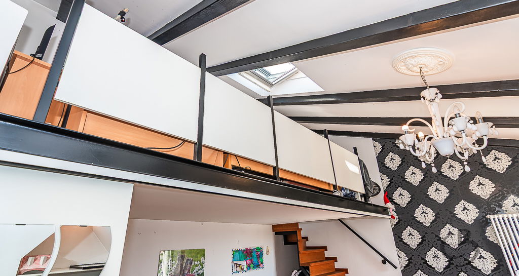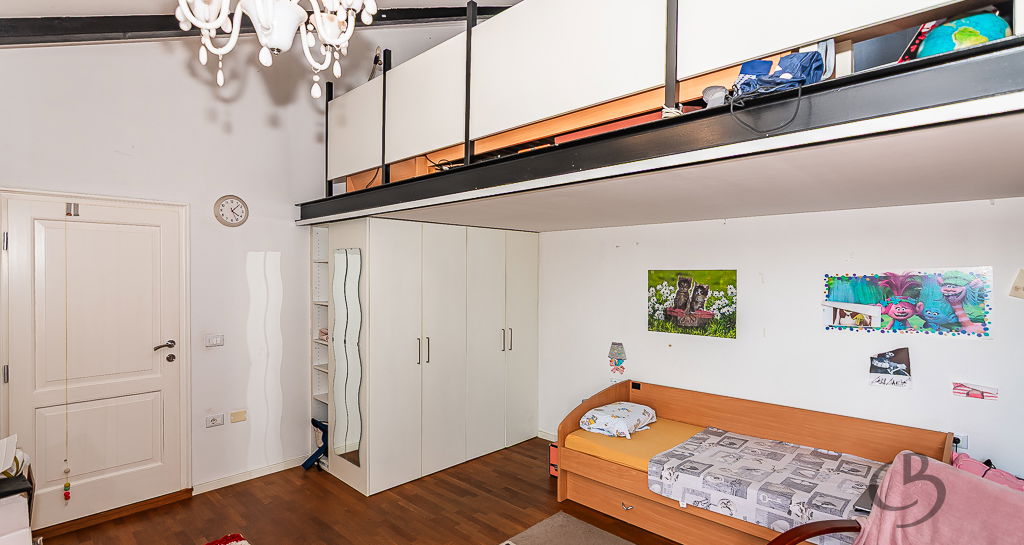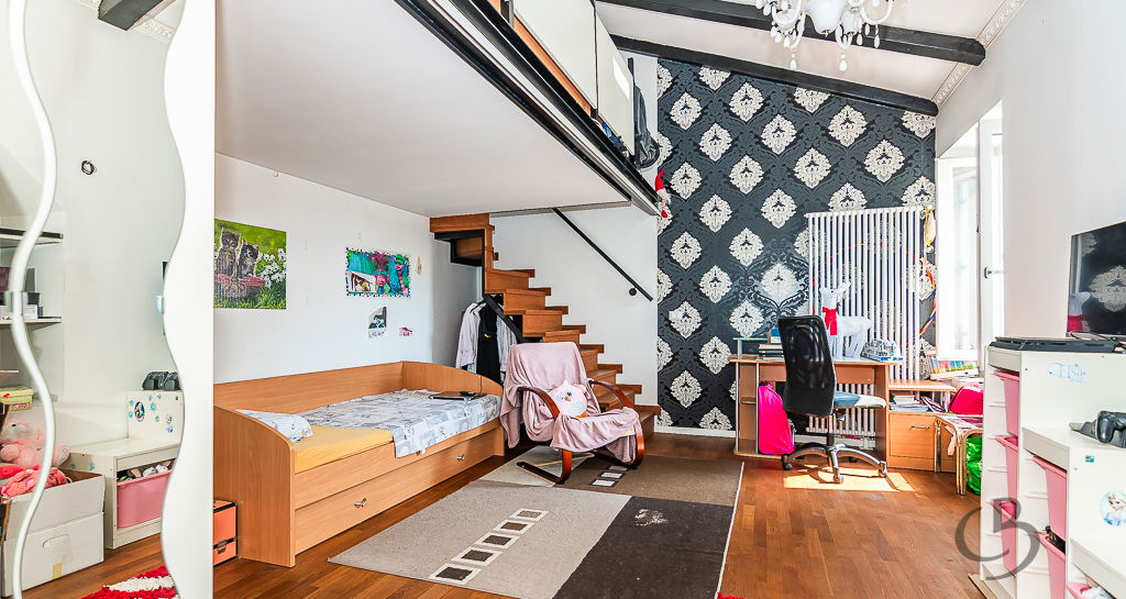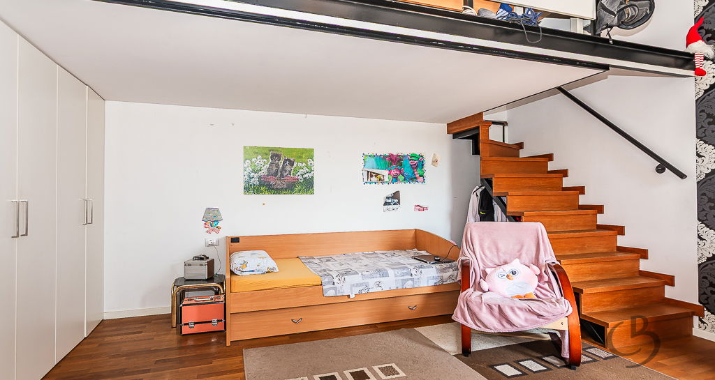 večja dodatna soba s spodnjim ležiščem, delovno mizo in omarami ter galerijo z dodatnim prostorom za posteljo, pisalno mizo in shranjevanje.