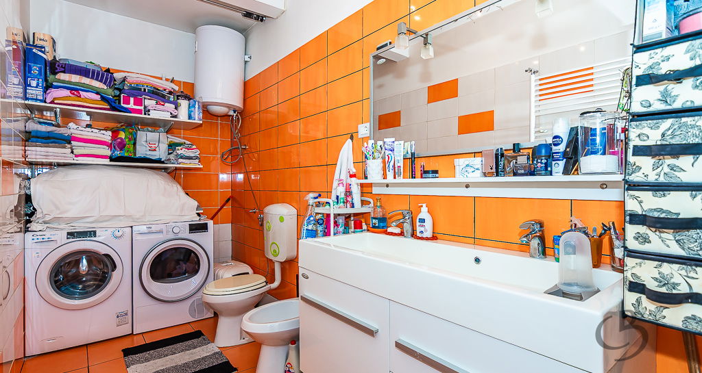 prostorna kopalnica s tušem, WC-jem ter prostorom za pralni in sušilni stroj,