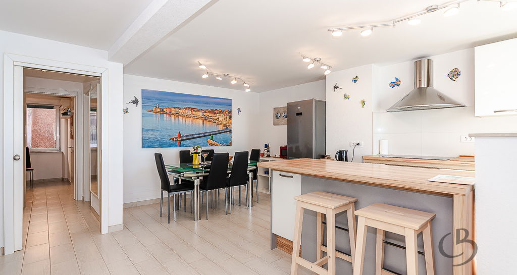 V urejeni stavbi na piranski Punti, v 2. nadstropju, se nahaja prijetno in funkcionalno razporejeno stanovanje, velikosti 78 m², ki je bilo leta 2013 temeljito prenovljeno.