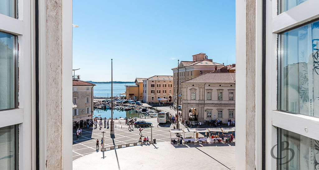 LOKACIJA: Stanovanje se nahaja tik ob Tartinijevem trgu, v samem srcu Pirana. Do Zelenjavnega trga je le približno 100–150 m.
