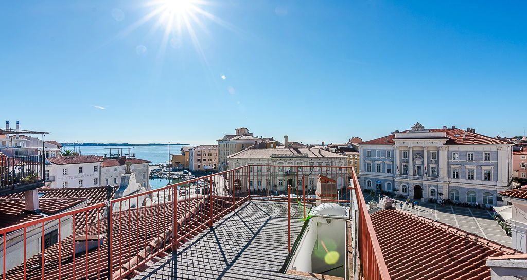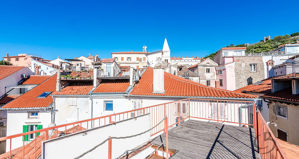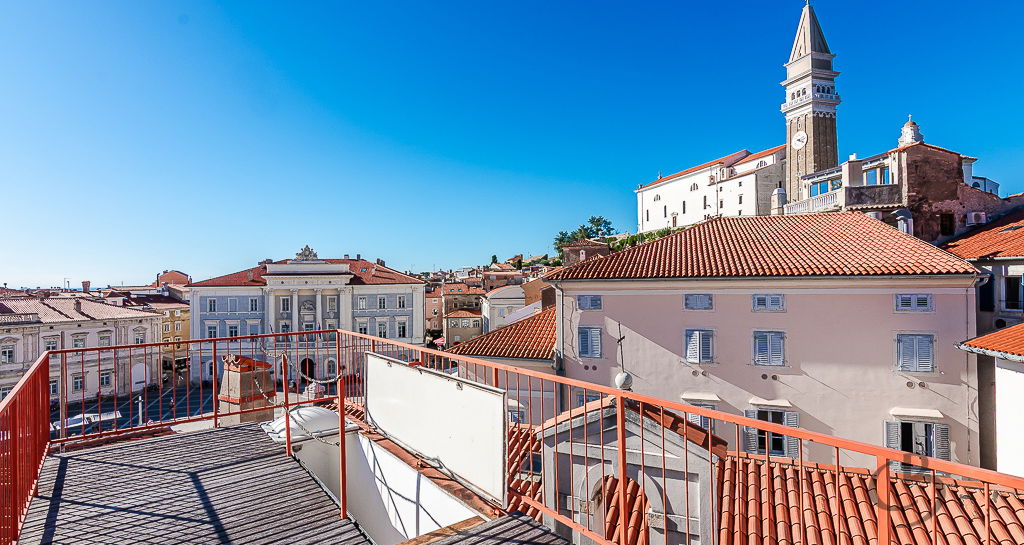 Tartinijev trg iz prve vrste – urejeno 2-sobno stanovanje s teraso in čudovitim razgledom