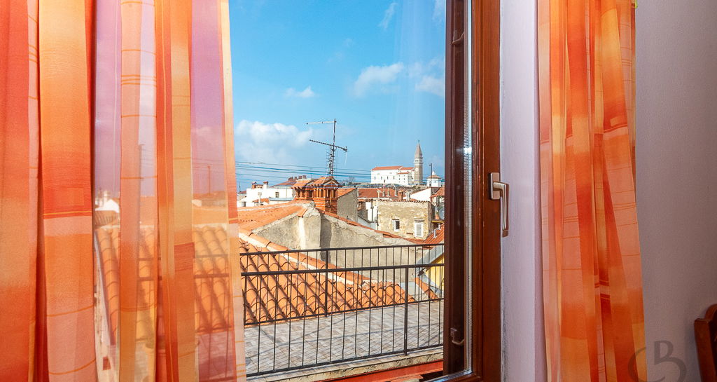 V mandardi boste pa imate na razpolago dve večji spalnici in ter izhod na teraso. Terasa je zares prostorna in meri 18m2. Ima lep odprt pogled na mesto Piran, stolnico Sv. Jurija in na morje proti Savudriji ter omogoča namestitev velike mize s stoli, ležalnikov, idealna tudi za žar v družbi prijateljev.