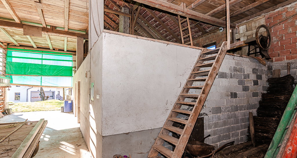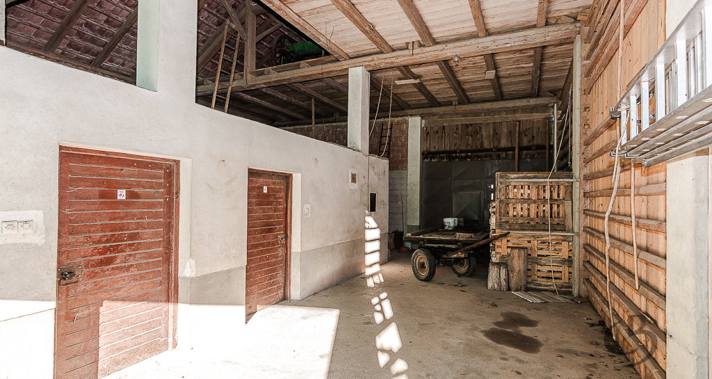 pomožni kmetijski del stavbe ( 77 m²) – primeren za shrambo, delavnico, orodje ali manjšo dejavnost